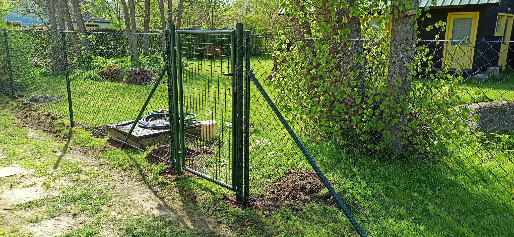Keevisvõrkaia ja värava paigaldus ridaelamu hoovi poolitamiseks.