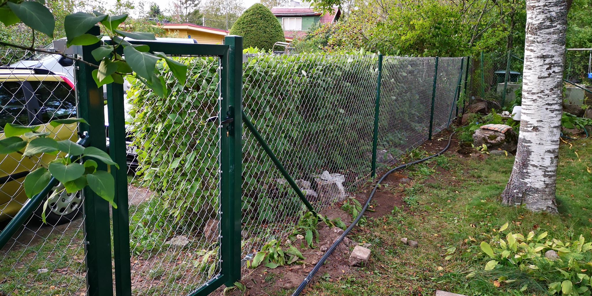 Vana võrkaia eemaldus ja uue 3D paneelaia paigaldus.
