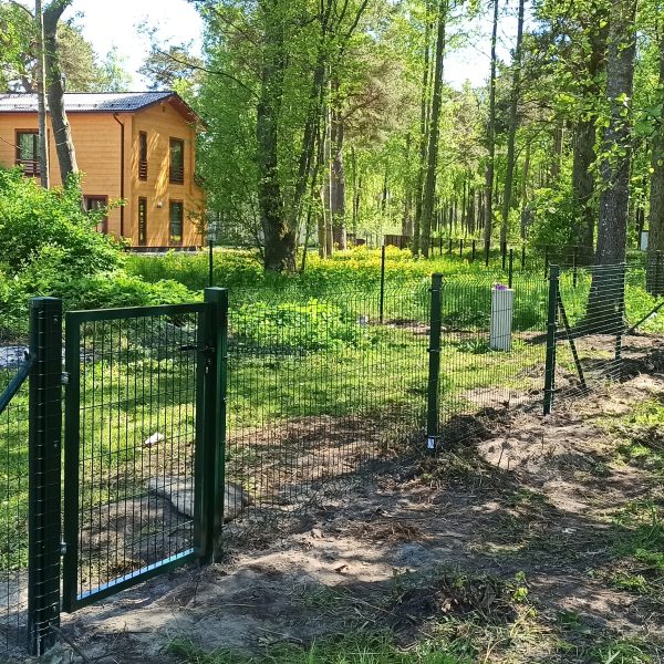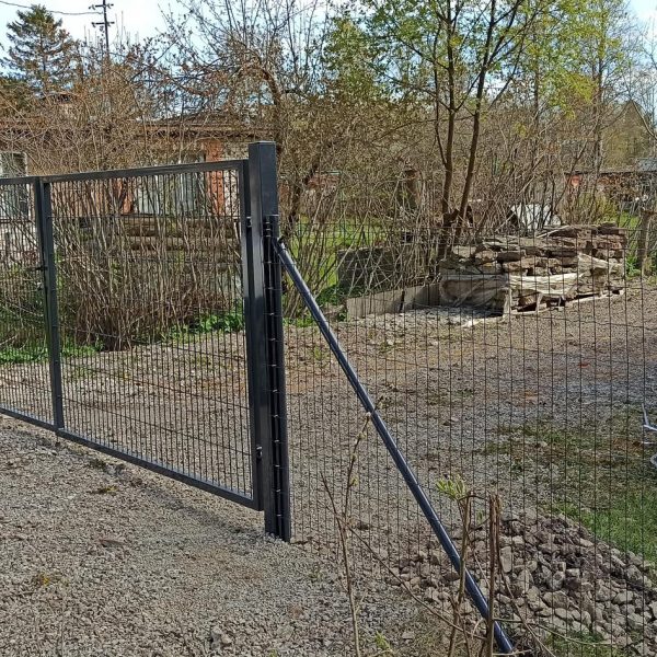 3D paneelaia paigaldus suvila krundi ümber. Jalgvärava paigaldus.