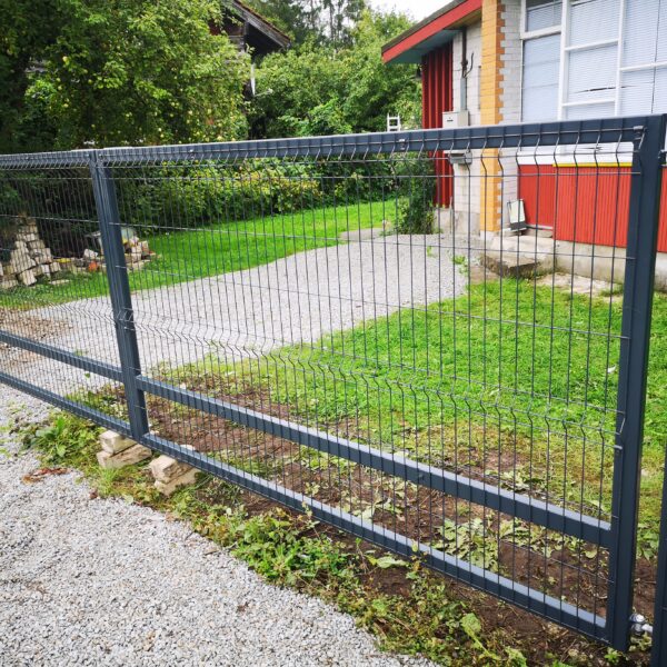Eramu hoovi 2 külje piiramine 1,5 m kõrguse 3D keevispaneeliga + jalgvärav.
