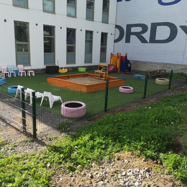 Lasteaia mänguväljaku piiramine 1 meetri kõrguse 3D paneeliga + jalgvärav.